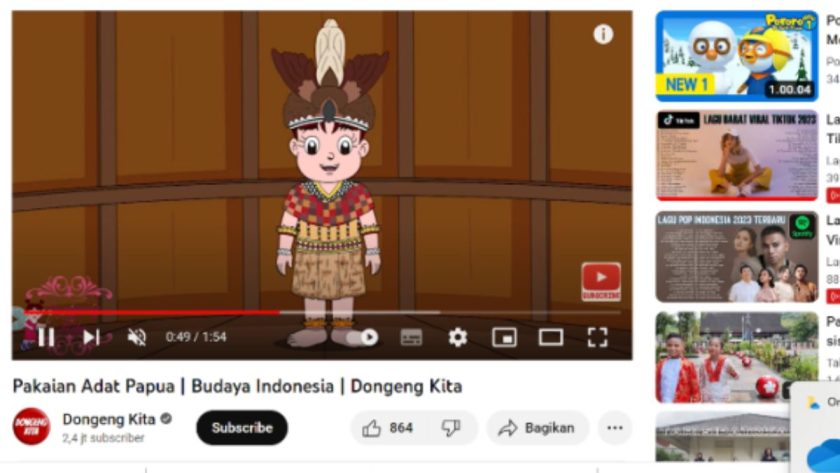 Gambar 2. Contoh pembelajaran kebudayaan tentang baju daerah. (Sumber: YouTube @dongengkita)
