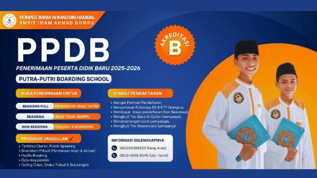 Modernis.co, Lombok – Pondok Pesantren Imam Ahmad Bin Hambal SMPIT Imam Ahmad Dompu  membuka Penerimaan Peserta Didik Baru (PPDB) untuk Putra dan Putri tahun ajaran...